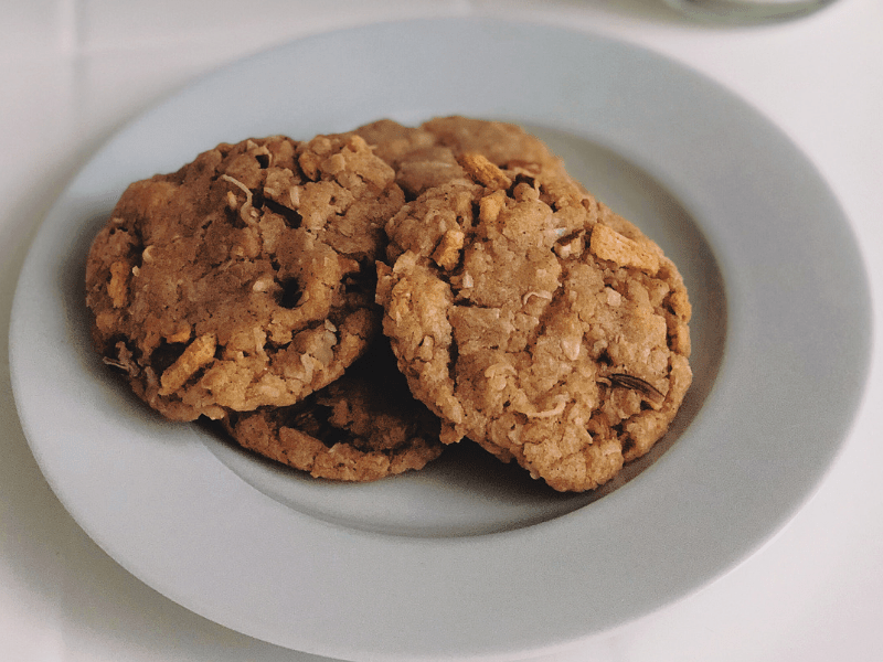 I don’t eat a ton of cereal and I don’t like to be wasteful, so I wanted to find a way to use up the remainder of the package before it went stale. Then it dawned on me – those confusing cookies my aunt made used cereal, so why don’t I try my own version of a Ranger Cookie? Using crushed cinnamon toast cereal in my cookies was a game-changer. It inspired me to find other substitutions to create new flavor combinations and completely reinvent the Ranger Cookie of my past.