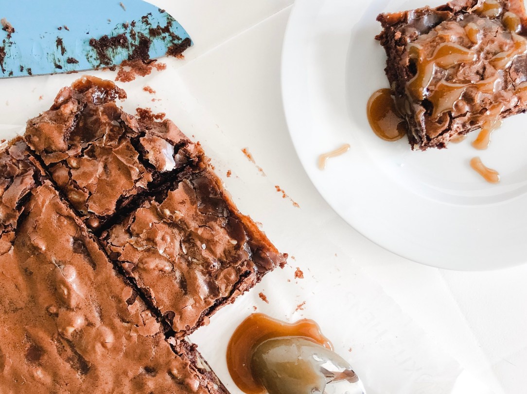 This recipe has all that is good in the world inside of it: dark chocolate chunks, walnuts, and homemade salted caramel. It’s gooey. It’s messy. It’s sweet. It’s salty. It’s crunchy. It’s crackly-topped. It’s MORE than you could ever ask for in one pan.